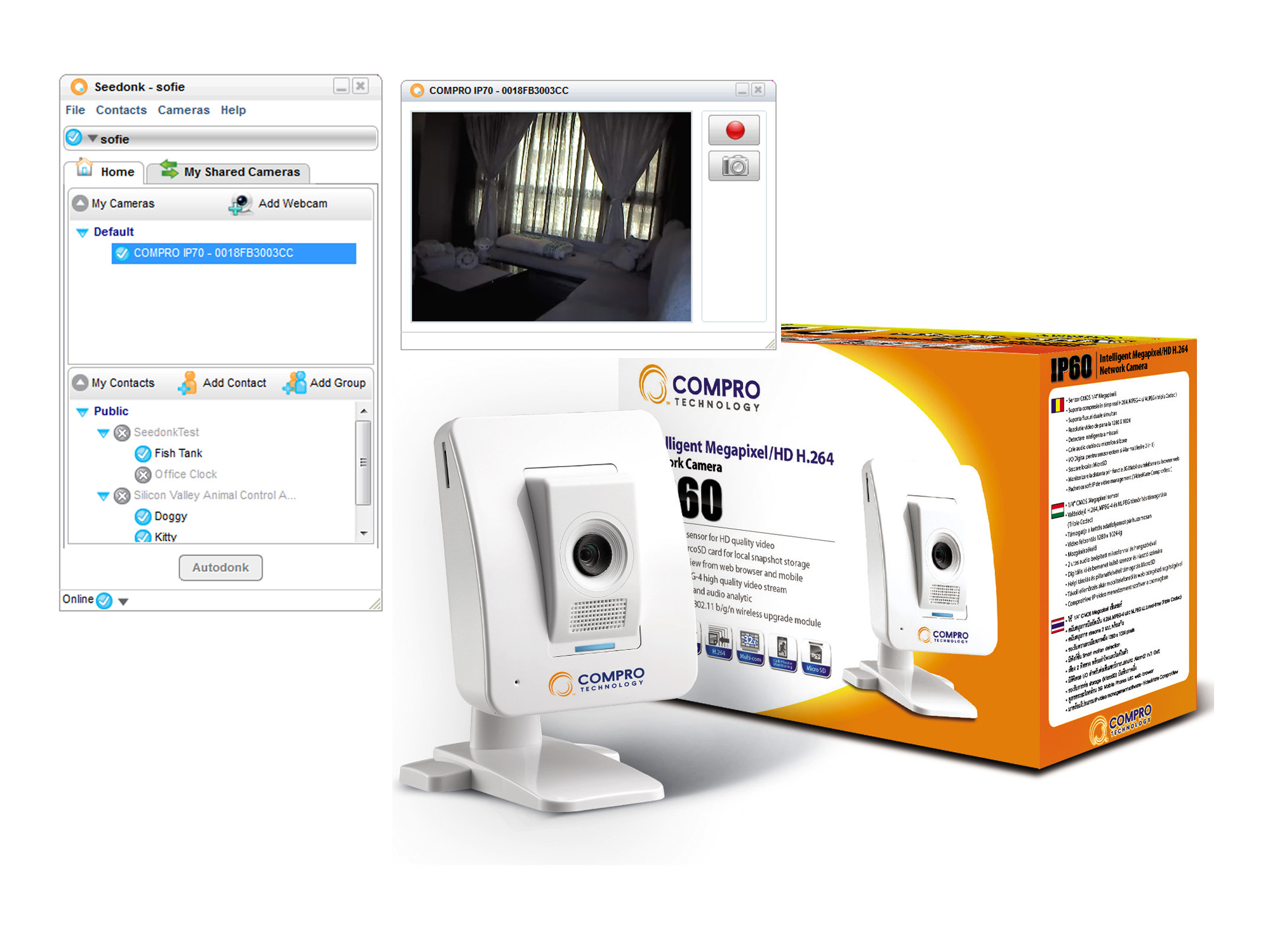 Az IP60 konfigurálása és vezérlése böngészőn keresztül is történhet, üzleti felhasználók számára azonban jobb megoldás a ComproView, ami akár 32 kamera képét is tudja egyszerre monitorozni. A webes eléréshez nagyon hasznos, hogy a beépített szerver natív támogatást nyújt az iDDNS.org szolgáltatáshoz, amely segítségével fix IP címet is rendelhetünk az eszközhöz – ingyenesen.