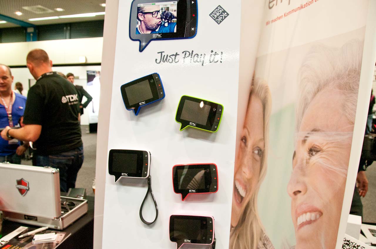A NativeUnion nevű cégnél két érdekes dolgot találtunk. Az egyik a Play nevű kis videofelvevő, aminek alakja pontosan olyan, mint a képregényekben használt szövegbuborékoké. Belül 256 MB-nyi memória található, erre pedig nagyjából három percnyi képes-hangos üzenet fér. A készüléket a mellékelt mágneses lap segítségével rögzíthetjük bárhova (legjobb hely a hűtőszekrény ajtaja), felvett üzenet pedig a 2,4”-os kijelzőn jelenik majd meg. Áramforrásként AAA akkut használ, ami 40 napnyi készenlétre elég.