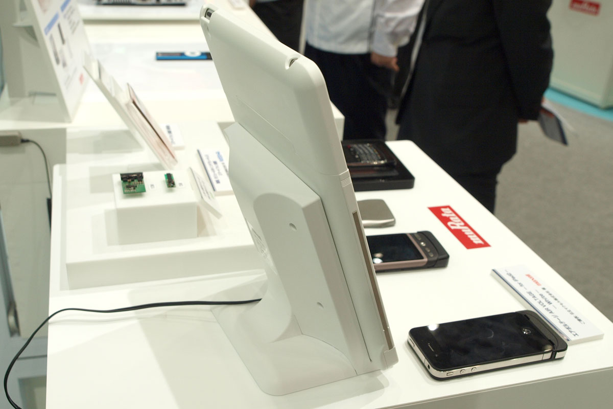 A muRata standján működő vezeték nélküli töltőket láttunk, az iPadot decemberben már lehet is így tölteni.