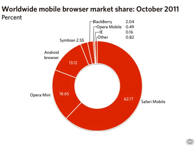 A kétféle módon számolt piaci részesedés közötti hasonlóság nagyon jól jelzi, hogy jóval több asztali számítógép és notebook kapcsolódik jelen pillanatban az internetre, mint amennyi mobiltelefont és táblagépet használnak a felhasználók: 93,7 illetve 6 százalék az arány. A jövőben azonban inkább a mobil termékek irányába tolódik majd el az arány, ami azt eredményezi majd, hogy az Internet Explorer piaci részesedése még tovább csökken. A mobil böngészők piacán egyelőre ugyanis toronymagasan a Safari mobil verziója vezet 62,17 százalékkal (alig több, mint fél év alatt 15%-os növekedést produkálva), második helyen az Opera Mini áll 18,65%-kal, harmadik pedig az Android natív böngészője 13,12%-kal. Az Internet Explorer csak a hetedik ebben a rangsorban, gyakorlatilag mérhetetlen részaránnyal (0,16%), és nem valószínű, hogy a Windows Phone 7 olyan ütemben tud majd terjedni, hogy az a piaci viszonyokat nagyon felforgassa.
