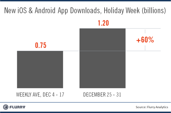 Az adatok a Flurry piackutatótól származnak, amely néhány nappal korábban azt is közölte, hogy a számítások szerint december 25-én 6,8 millió eszközt aktiváltak világszerte – ehhez képest december első napjaiban 1,5 millió volt a napi átlag.
