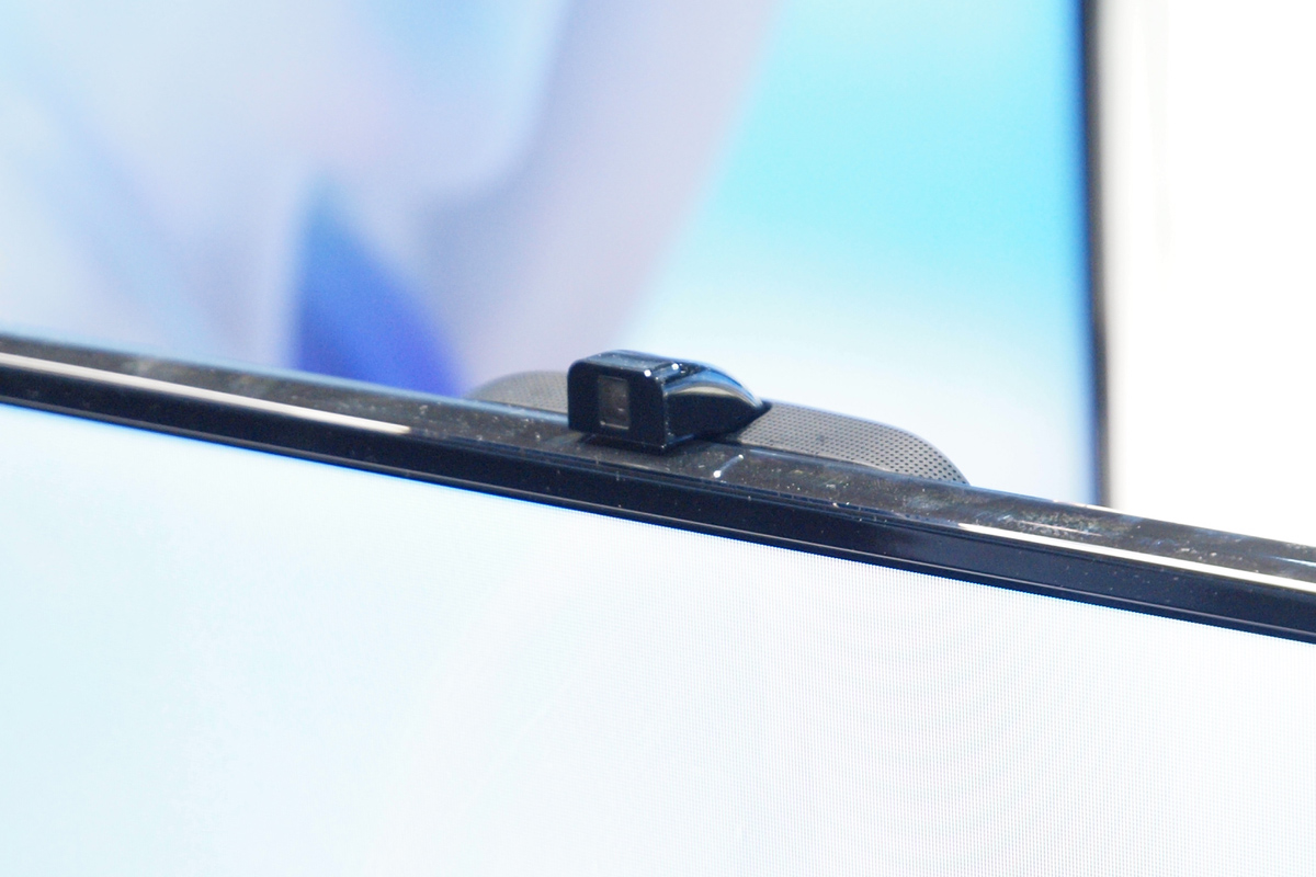 Természetesen nem tűnt el, de a Samsung megoldotta, hogy a használaton kívüli modul szépen visszahúzódjék a kávába, így ugyanis a keret a panel teljes szélességében igazán vékony tudott maradni. A koreai vállalat dizájnerei igazán jó munkát végeztek (ismét), a tévék szerintük nagyon szépek, viszont azért nagy kár, hogy a Samsung továbbra is az X alakú talpat erőlteti, szerintünk ez annyira nem passzol a káva remek formatervezéséhez, hogy elmondani nem lehet – a képek beszélnek helyettünk is. A Samsung egyébként a nagyobb képátlójú modelleknél is hasonló állványt használ, de az X-et kettébontva, a talpak a tévék széleire kerültek. Kicsit olyan érzésünk volt, mintha a legnagyobb F8000-es bármikor elborulhatna, de kipróbáltuk, az állvány kellő stabiltást biztosít. Az F7500-as tévén azt is megfigyelhettük, hogy a kamera a használaton kívüli búvóhelyéből hogyan tűnik elő, ha szükség van rá.