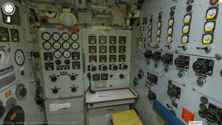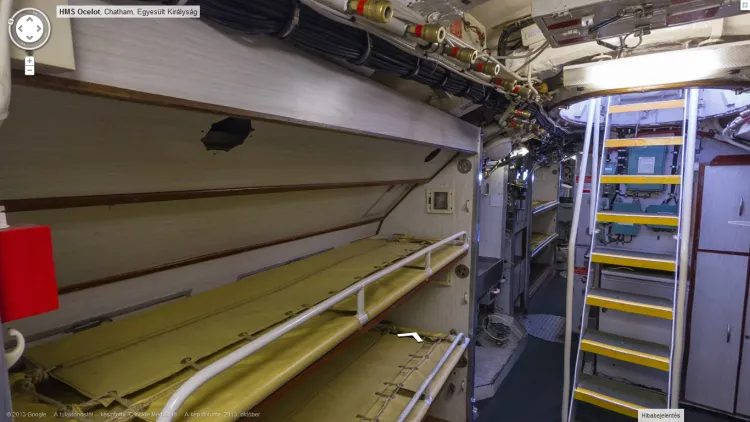 A hajógyárból a tengeralattjáró gyomrába vezető út igen érdekes, s azt is jól mutatja, hogy a Google StreetView nem csak az utcák, de szűkebb, csak gyalogosan bejárható helyek bemutatására is alkalmas. Ezt egyébként egyelőre még nem a hátizsákba épített kamerarendszerükkel készítették, azzal még szűkebb helyekre is eljuttatható a StreetView.