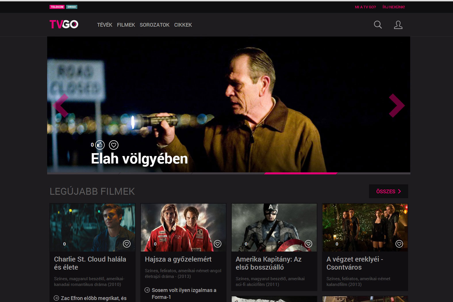 A TV GO nemcsak a lineáris tévéadáshoz nyújt hozzáférést, hanem a szolgáltató videotékájához is. Ez elvileg konkurenciát jelentett volna a Magyar Telekom már meglévő Moziaréna szolgáltatásának, a gyakorlatban azonban nem lesz háziverseny, egyszerűen azért, mert a Moziaréna megszűnt önálló egységként működni, beleolvadt a TV GO-ba. Ez az a rész, amelyet nemcsak az előfizetők, hanem bárki használhat; a filmeket a szokásos módon nézhetjük meg, 24 órára lehet őket kikölcsönözni, fizetni bankkártyával kell, a megvásárolt címeket pedig bármelyik eszközön meg tudjuk nézni. A szolgáltatás lehetővé teszi azt is, hogy a táblagépen félbehagyott filmeket mondjuk a tévén vagy számítógépen folytassuk, pontosan onnan, ahol megállítottuk. Sajnos a Telekom azt egyelőre nem oldotta meg, hogy az IPTV- és kábeltévé szolgáltatásokkal is legyen átjárás, így a kölcsönzött filmeket a set-top-boxok nem látják, a TV GO-n keresztül pedig nem lehet megnézni azokat a tartalmakat, amelyeket valamelyik tévészolgáltatás keretén belül vásároltunk meg.