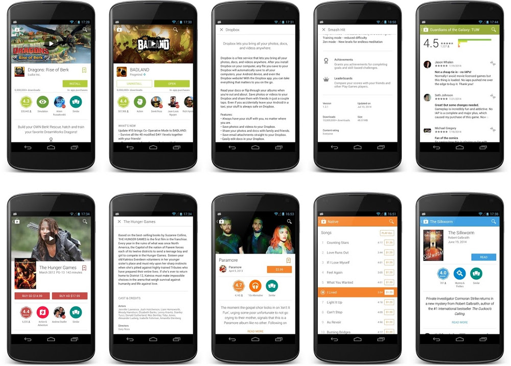 Elkezdte a Play Áruház kliensének frissítését a Google – az update fokozatosan jön ki, így előfordulhat, hogy pár napot, hetet várnunk kell, amíg megjelenik telefonunkon vagy táblagépünkön. Az új programmal az Android L-lel bejelentett Material Design kinézetet kapja meg a bolt felülete, ami így sokkal inkább képközpontú lesz, a különféle szekciókhoz (értékelés, besorolás, stb.) pedig nagyobb és jobban látható ikonok tartoznak. Ez persze azt jelenti, hogy a kisebb kijelzőkön jóval többet fogunk görgetni, de cserébe sokkal modernebb és szebb felületet kapunk.
