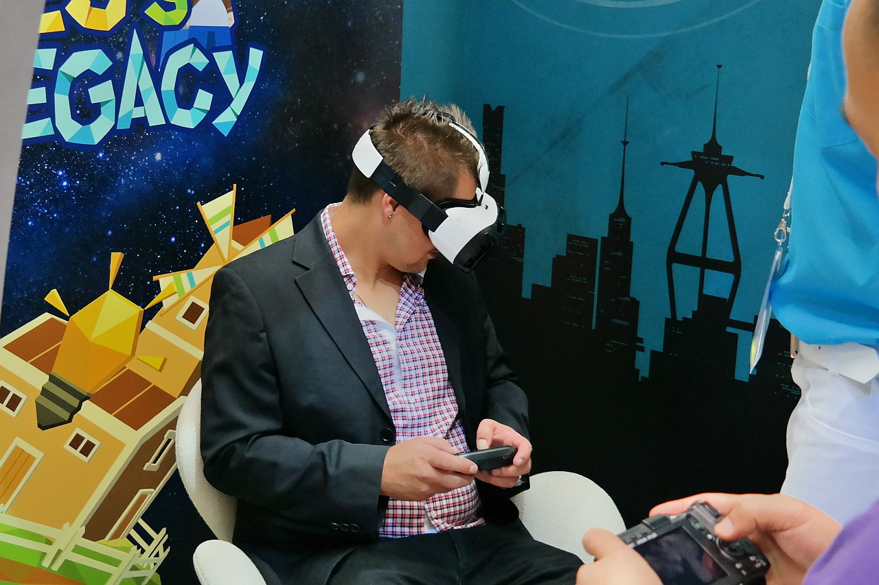 A mozis demó annyira nem volt érdekes, legalábbis az nem adott sok plusz a dologhoz, hogy filmnézés közben szét tudtunk nézni a sorok között is. A virtuális város viszont már más tészta: a renderelés minőségével ugyan nem voltunk elégedettek, de az tény, hogy a tájékozódás és a navigáció (egyébként egy jetpack segítségével) bámulatosan élethű volt, a szemüveg a fejmozgást tökéletesen pontosan képezte le. Nemcsak a sebesség volt megfelelő, hanem a reakcióidő is kellően rövid volt ahhoz, hogy már-már el tudtuk volna felejteni, hogy nem is valós térben mozgunk. Azért csak majdnem, mert a képminőséggel egyelőre gondok vannak. Nemcsak a renderelés kezdetleges minősége miatt (ami amúgy is nyilván fejlődik majd), hanem azért is, mert a telefon felbontása ehhez a felhasználás módhoz nem elég nagy. Hiába nyújt a mobil 1440×2560 képpontos részletességet a teljes kijelzőn, ha abból a Gear VR csak két pénzérme nagyságú területet hasznosít. Elkerülhetetlen, hogy a látómezőt betöltő képeknél a pixelek ne látszódjanak – vagyis szerintünk az összességében nem feltétlenül tűnik járható útnak, hogy egy okostelefon biztosítsa a képet. Főleg, hogy korábban már több alkalommal is bebizonyosodott, hogy egy ilyen szemüvegben a 720p-s panel viszont már elég ahhoz, hogy elvesszünk a részletekben.