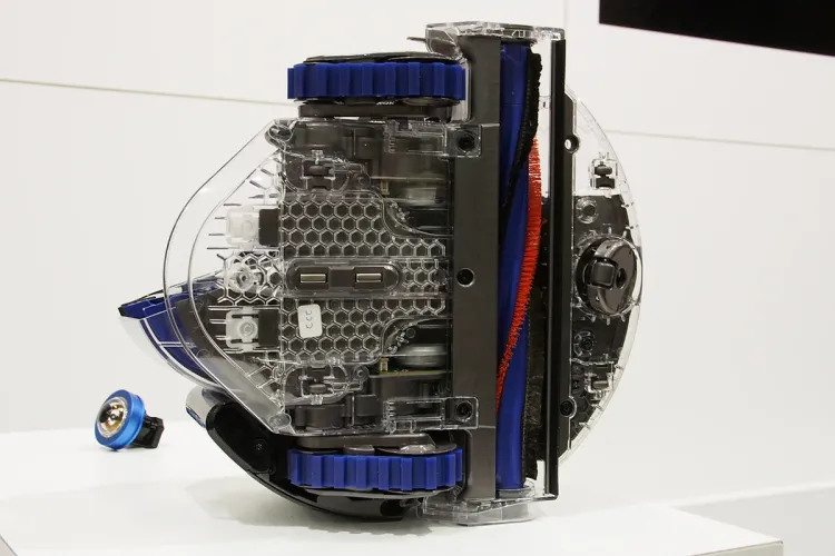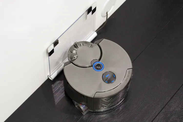 Persze az elmúlt másfél évtizedben a konkurencia sem állt le a fejlesztéssel, sőt a robotizált porszívózás igazán nagyot fejlődött ezalatt az idő alatt. Néhány éve még elég lett volna, ha a robot szépen takarít, de ma egy csúcskészüléknek már szisztematikusan kell végigjárnia a lakást, hogy kitűnjön a hasonló készülékek sorából. Ezt nyilván a Dysonnál is tudták, ezért a 360 Eye robotporszívóba egy kamera alapú térképező és navigációs rendszert építettek. A robot tetején elhelyezett kamera 360 fokos szögben lát körbe a robot tetejének a síkjától felfelé 45 fokos szögig. Hiába mutat tehát a kamera a plafon felé, azt az esetek jelentős részében nem látja, így csak a körülötte lévő tárgyakra és a falakra koncentrál. A szobában való pozicionáláshoz a robot jól azonosítható, kontrasztos referenciapontokat választ ki a környezetből, amik méretéből és elhelyezkedéséből bármelyik pillanatban ki tudja számolni a helyzetét.