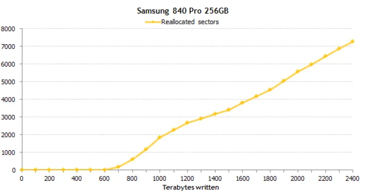Lényeges, hogy melyik meghajtó jelzi előre a hibát, és persze az is, hogy ilyenkor menthetők-e még az adatok. A hiba előrejelzésében a Samsung 840 Pro jól teljesített, 600 TB után szinte azonos tempóban, egészen 2,4 PB írásig egyenletesen növekedett az áthelyezett szektorainak száma. A mérések szerint a meghajtók teljesítménye jelentősen nem, vagy csak az utolsó pillanatokban romlott (kivéve a Samsung 840). Ami az adatok olvashatóságát illeti, csak az Intel és a Kingston meghajtóiról lehetett adatokat olvasni, de csak addig, amíg újra nem indították a gépet (ez nem túl nagy vigasz).