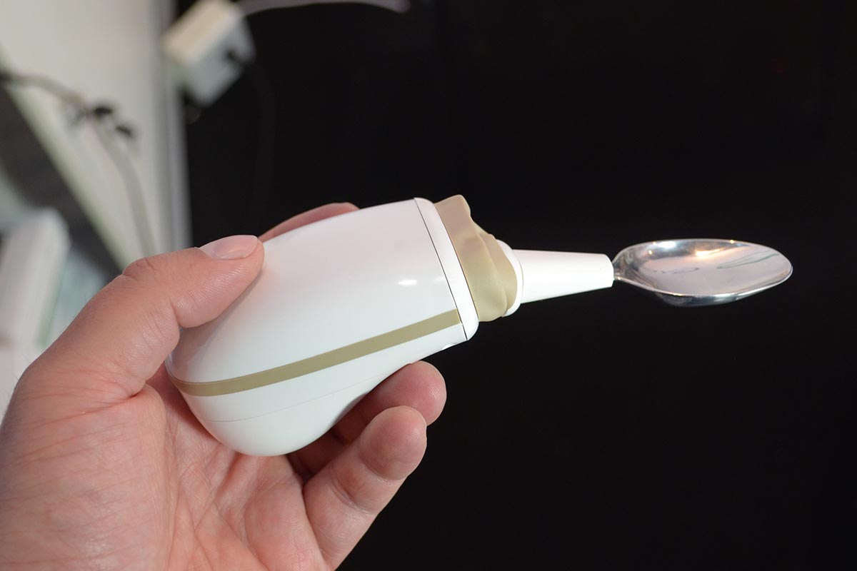 A fejet mozgató apró motorok bármilyen irányban képesek mozgatni a fejet, és a mérések szerint a remegés amplitúdóját, átlagos esetben 85 százalékkal tudják csökkenteni. Az evőeszköz nem kicsi, és nehéz is (130 grammos), de nem túl vészes tartani. Egyetlen feltöltéssel nagyjából 3 órát képes működni, ami három napra elegendő.