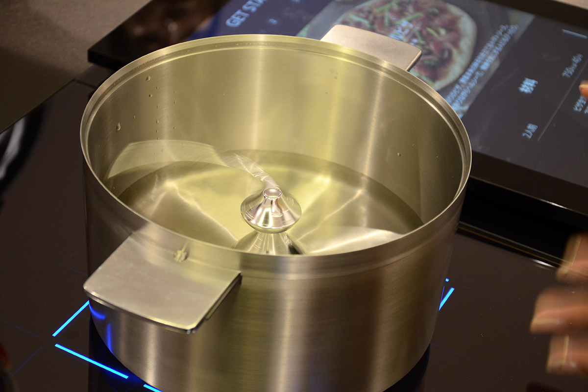 Szóval, hogyan is főz majd 2018-ban az, aki fogékony a technológiai újdonságokra? A lábost például egyszerűen csak rárakja az indukciós tűzhelyre. Valahova. Mindegy, hogy hova, mert a tűzhely megnézi, hogy hol van a melegítenivaló. Eleinte viccből biztos néha még odébb is húzza majd a lábost, hiszen van követés funkció (amihez nem kevesebb mint 76 tekercset építettek be a borítás alá, bizonyosan nem költségtakarékos megoldás.)