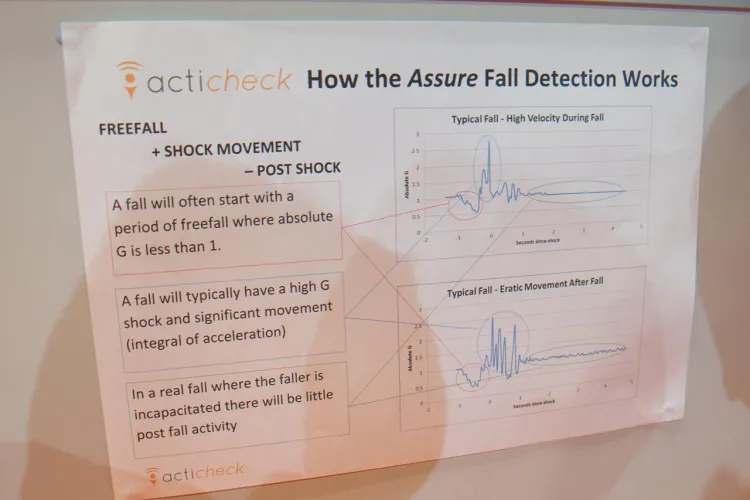Az acticheck nevű kütyüt a végletekig igyekeztek leegyszerűsíteni: ahogy a cég képviselője elmondta, az a cél az volt, hogy a technológiát kevésbé kedvelő, idős felhasználók se vegyék le magukról azért, mert unják, hogy naponta tölteni kell az akkumulátort (a kütyü egy gombelemmel egy évig üzemel), vagy mert állandóan a kijelzőn kiírtakra kell reagálni (nincs is kijelzője).