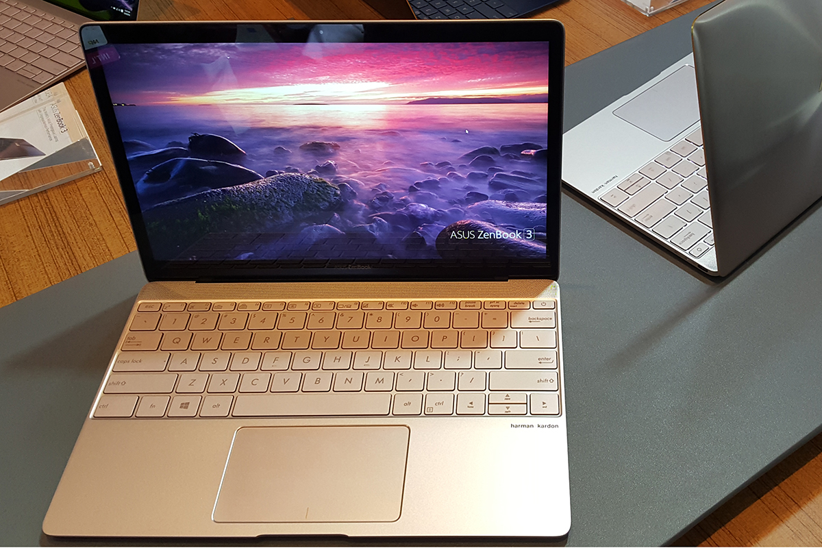 És nemcsak a külső, hanem a belső is minden igényt kielégítő: a csúcskonfiguráció Intel Core i7 processzort, 16 GB RAM-ot, 1 TB-os SSD-t tartalmaz, utóbbi ráadásul PCIe ×4 foglalatú, 1350 MB/s-os sebességgel. Az IPS technológiával készült, az NTSC színtér teljes lefedésére képes kijelzőt Gorilla Glass 4 védi, a csatlakozóknál pedig megjelent az USB-C csatlakozó, amely nemcsak a 3.1-es szabványú USB-s eszközöket tudja fogadni, hanem még Thunderbolt 3-kompatibilis is – illetve a gyorstöltőt is ide kell csatlakoztatni. A notebook akkuja normál körülmények között 9 órányi használatot tesz lehetővé, a töltés pedig nagyjából 2 óráig tart – viszont 0-ról 60%-ra 49 perc alatt fel lehet „pumpálni” a gépet. A portok száma egy USB-C-s „dokkolóval” növelhető, ily módon akár D-Subot és Ethernet interfészt is kaphat a ZenBook 3. A játékosok számára jó hír, hogy külső modullal a GPU is alaposan felturbózható lesz. Az adatok biztonságát ujjlenyomat-olvasó is segíti, amely a Microsoft-féle Windows Hello technológiát is támogatja.