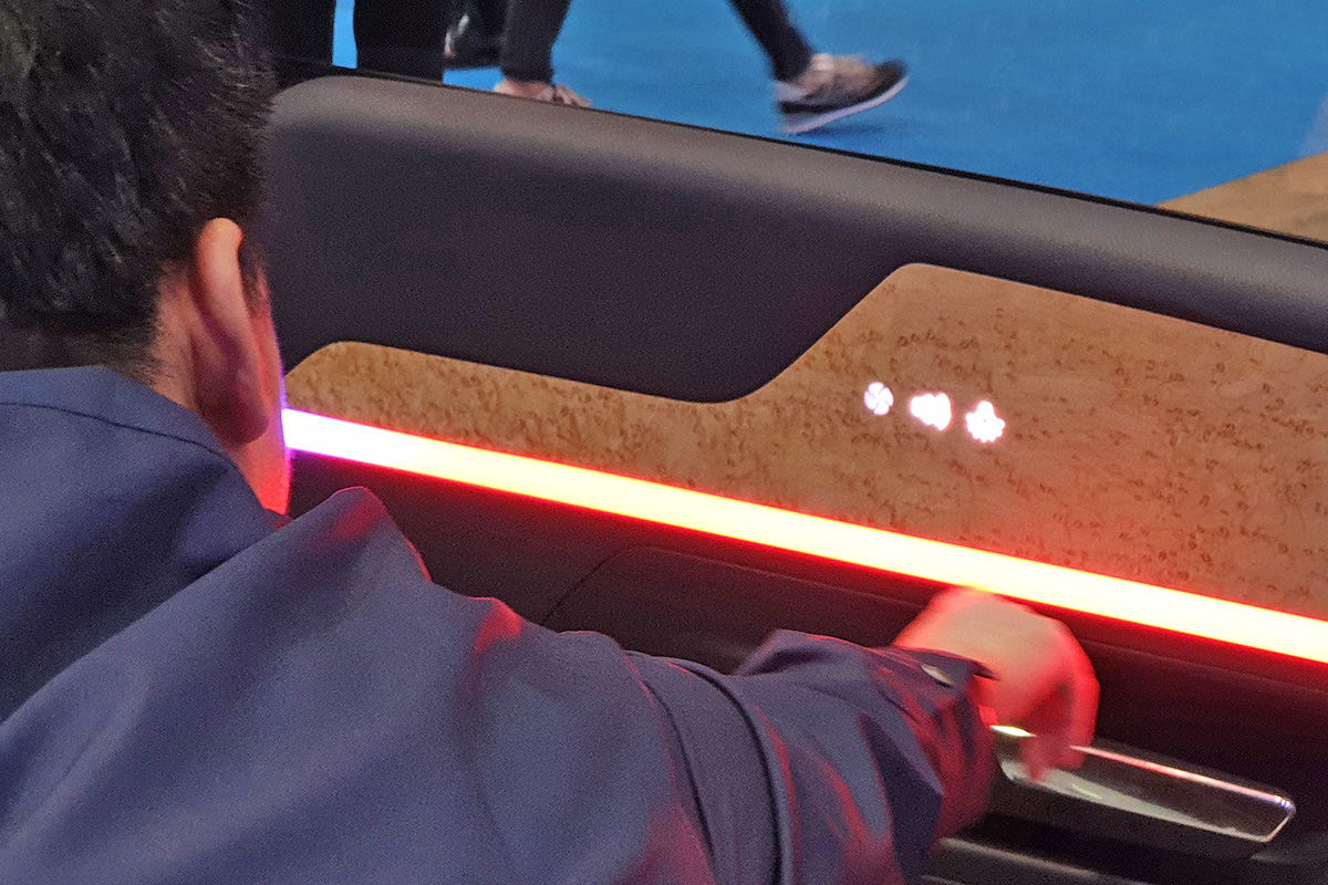 A gesztusvezérlés koncepciója mellett a „pilótafülkében” még egy újdonságot is meg lehetett nézni: a kormányba szerelt érintésérzékeny felület nemcsak azt tudja megmondani, hogy fogjuk-e a kormányt, hanem azt is, hogy rendesen megmarkoltuk-e, vagy éppen csak, hogy hozzáérünk az ujjunkkal. Ha tippelni kellene, akkor azt mondanánk, hogy ez a kütyü sokkal előbb be fog kerülni az autókba, mert jelenleg az autonóm rendszerek még nem tökéletesek, ezért a gyártók előírása szerint akkor is beavatkozásra készen kell figyelnie a sofőrnek, ha az autó saját magát vezeti. Ezzel a kütyüvel pedig ezt tökéletesen lehet ellenőrizni.