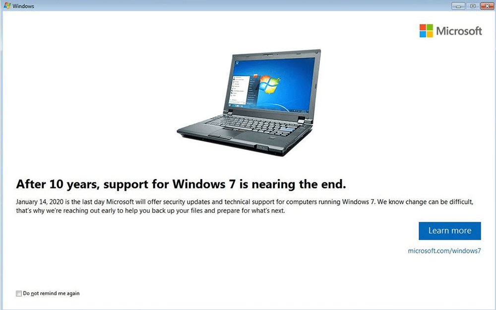 A Microsoft bejelentette, hogy január 15-től, vagyis attól a naptól kezdődően, hogy a Windows 7 terméktámogatása megszűnik, teljes képernyős üzenetekkel fogja bombázni a felhasználókat. Az értesítések természetesen azt mutatják majd, hogy a rendszer támogatása lejárt, valamint arra kéri majd velük a Microsoft a felhasználókat hogy mielőbb frissítsenek Windows 10-re.