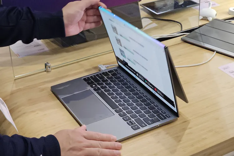 A kiállított modell egyébként Intel Core Ultra 7 processzort, 32 GB RAM-os és egy 1 TB-os SSD-t tartalmazott, de ez teljesen mellékes a kijelző mellett (alatt). Már csak azért, mert a Flip is egyelőre csak labortermék, azaz szó sincs arról, hogy forgalomba kerülne.